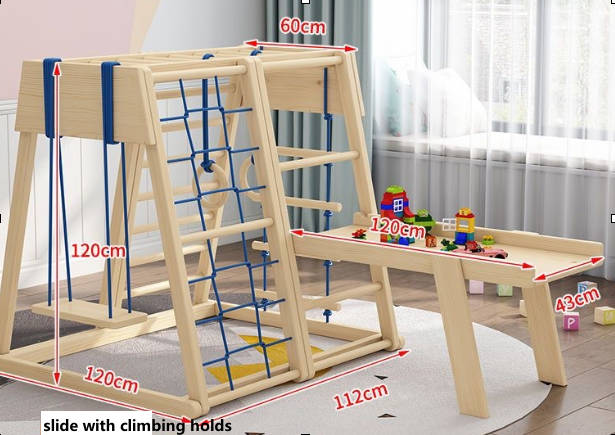 మా పిల్లల చెక్క క్లైంబింగ్ ఫ్రేమ్తో మీ ఇంటిలోనే మినీ అడ్వెంచర్ పార్కును సృష్టించండి! The పసిబిడ్డలు మరియు చిన్న పిల్లలకు సరైనది, ఈ ప్లేసెట్ స్లైడ్, స్వింగ్ మరియు క్లైంబింగ్ వాల్ కలిగి ఉంటుంది, ఇది గంటలు చురుకైన సరదాగా ఉంటుంది.