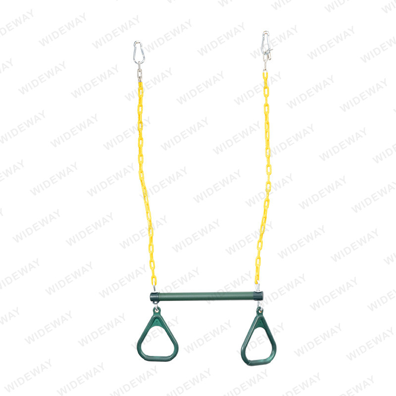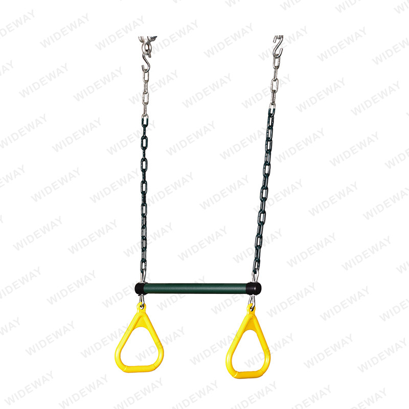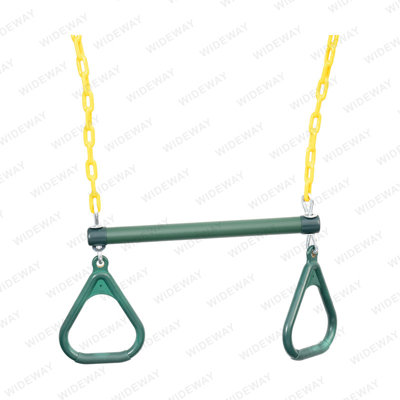 స్వింగ్ సెట్ కోసం ట్రాపెజ్ బార్ & రింగ్స్ అధిక-నాణ్యత మెటీరియల్తో తయారు చేయబడ్డాయి, ఇవి రోజువారీ ఉపయోగం యొక్క దుస్తులు మరియు కన్నీటిని తట్టుకోగలవు. బార్ గట్టి మెటల్తో తయారు చేయబడింది, అయితే రింగులు బలమైన మరియు మన్నికైన ప్లాస్టిక్తో తయారు చేయబడ్డాయి. ఉత్పత్తి కొనసాగేలా నిర్మించబడింది, ఇది సంవత్సరాలపాటు బహిరంగ వినోదం మరియు వ్యాయామాన్ని అందిస్తుంది.